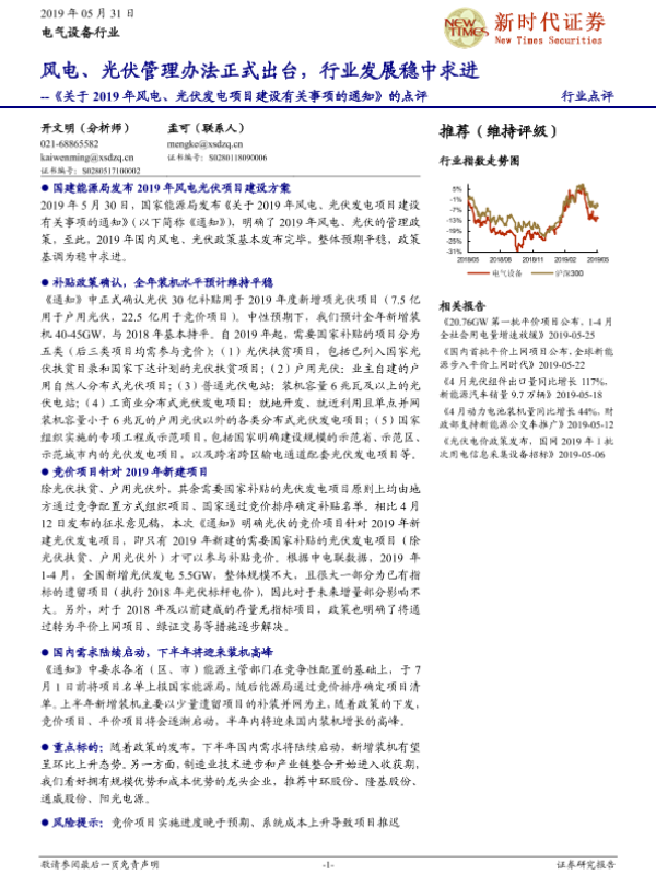 【新时代证券】【20190531】电气设备行业:《关于2019年风电、光伏发电项目建设有关事项的通知》的点评-3页