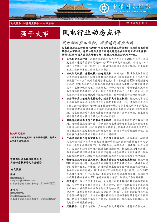 【中银证券】【20190531】风电行业动态点评:风电新政整体温和,存量建设有望加速-9页