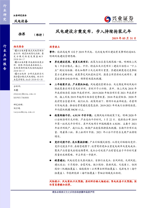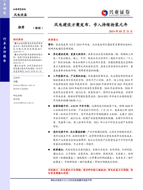 【兴业证券】【20190531】风电建设方案发布,步入持续抢装元年-2页