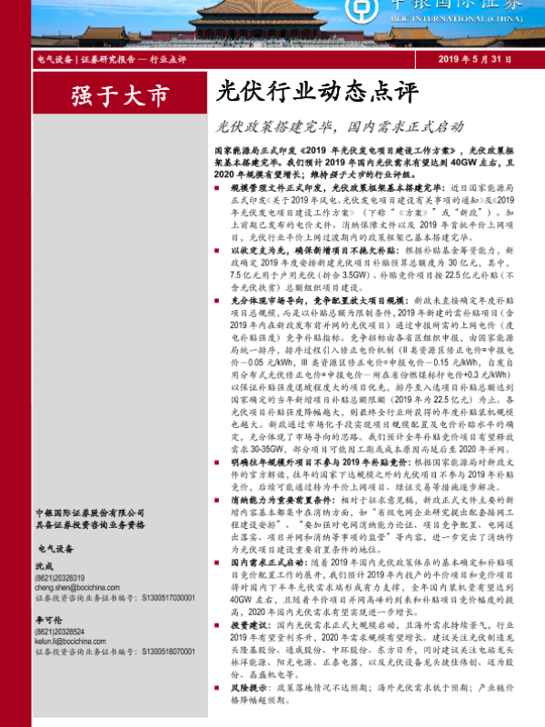 【中银证券】【20190531】光伏行业动态点评:光伏政策搭建完毕,国内需求正式启动-11页