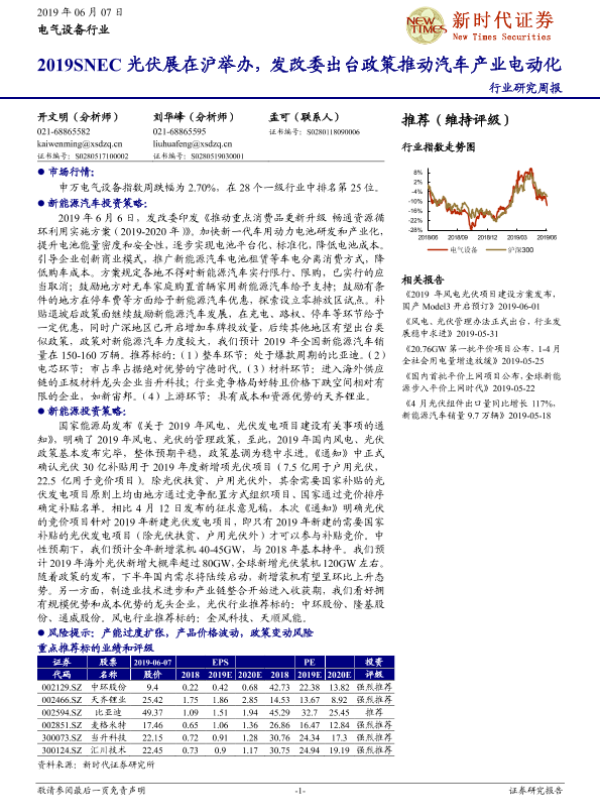 【新时代证券】【20190607】2019SNEC光伏展在沪举办,发改委出台政策推动汽车产业电动化-13页
