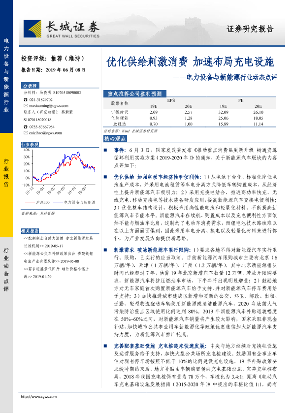 【长城证券】【20190608】电力设备与新能源行业动态点评:优化供给刺激消费 加速布局充电设施-3页