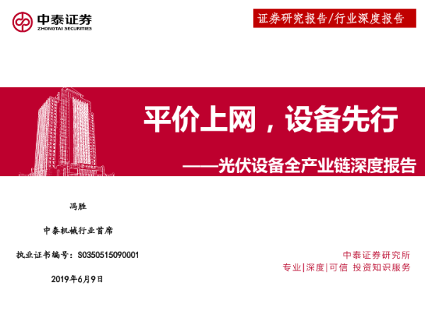 【中泰证券】【20190609】光伏设备全产业链深度报告:平价上网,设备先行-67页