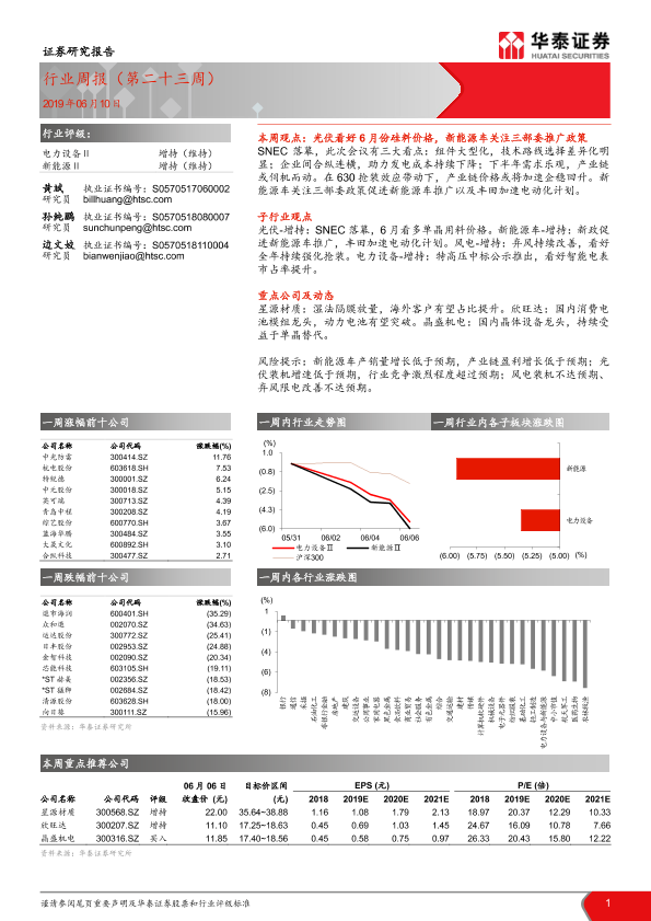 【华泰证券】【20190610】电力设备与新能源行业周报(第二十三周)-17页