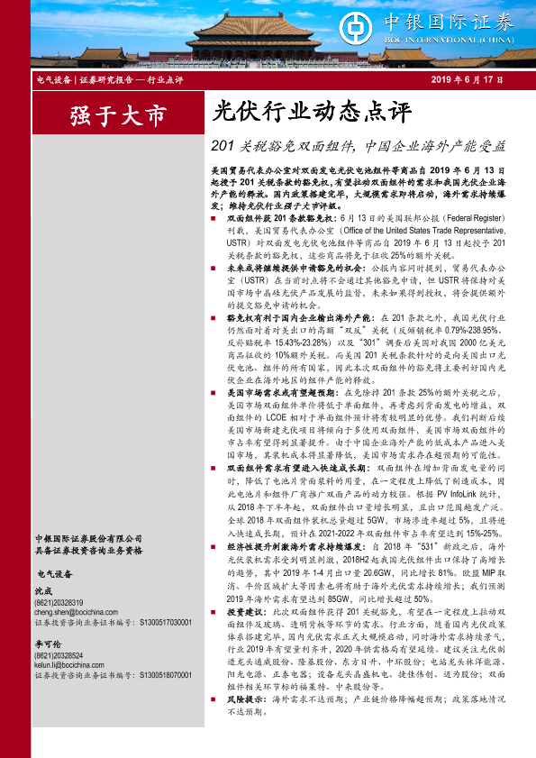 【中银证券】【20190617】光伏行业动态点评:201关税豁免双面组件,中国企业海外产能受益-5页