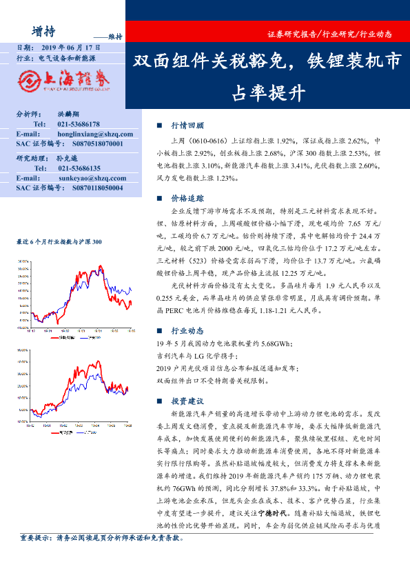 【上海证券】【20190617】电气设备和新能源:双面组件关税豁免,铁锂装机市占率提升-14页