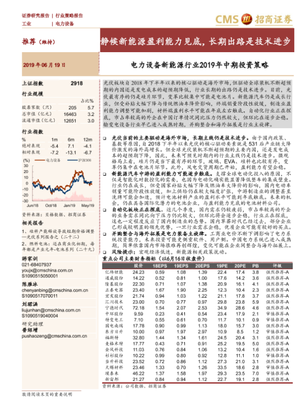 【海通证券】【20190619】电力设备新能源行业2019年中期投资策略:静候新能源盈利能力见底,长期出路是技术进步-42页