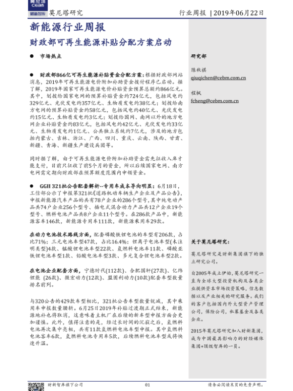 【莫尼塔研究】【20190622】新能源行业周报:财政部可再生能源补贴分配方案启动-10页