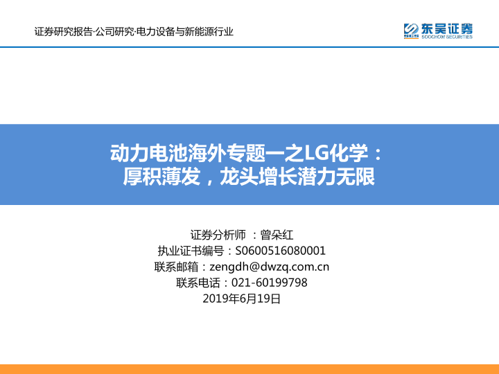 【东吴证券】【20190619】动力电池海外专题一之LG化学:厚积薄发,龙头增长潜力无限-33页
