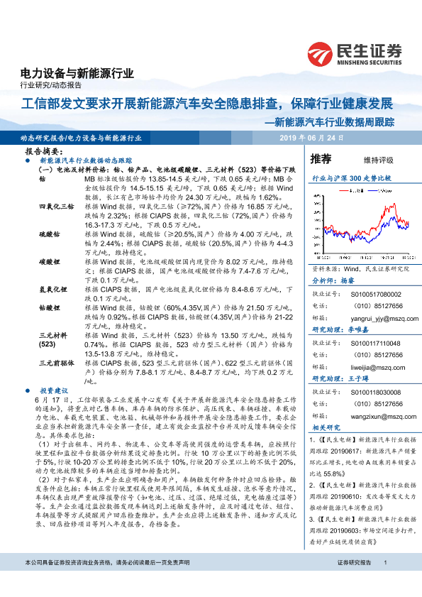 【民生证券】【20190624】新能源汽车行业数据周跟踪:工信部发文要求开展新能源汽车安全隐患排查,保障行业健康发展-13页