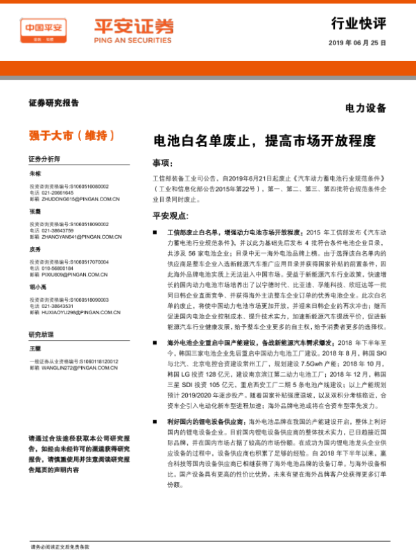 【平安证券】【20190625】电力设备:电池白名单废止,提高市场开放程度-3页