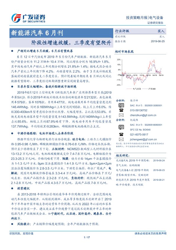 【广发证券】【20190625】20190625-广发证券-新能源汽车6月刊:阶段性增速放缓,三季度有望-17页