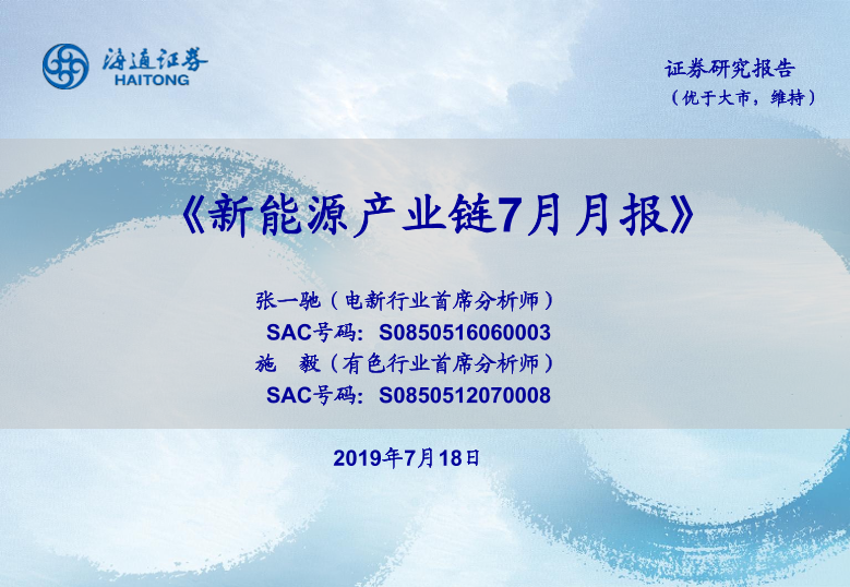 【海通证券】【20190718】新能源产业链7月月报-12页