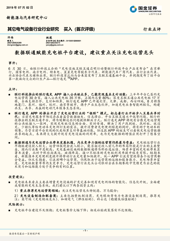 【国金证券】【20190702】数据联通赋能充电桩平台建设,建议重点关注充电运营龙头-6页