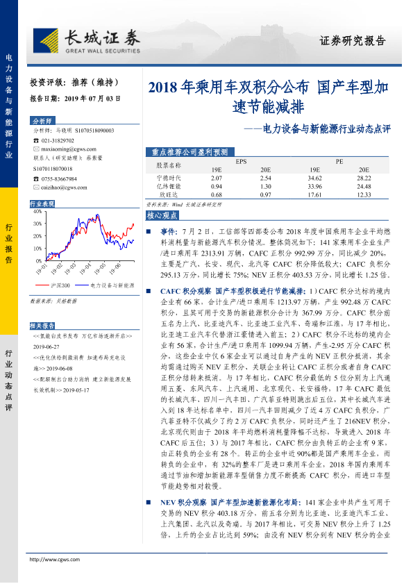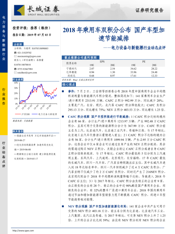 【长城证券】【20190703】20190703-长城证券-电力设备与新能源行业动态点评:2018年乘用车双积分公布 国产车型加速节能减排-3页