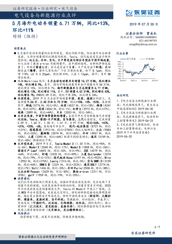 【东吴证券】【20190705】电气设备与新能源行业点评:5月海外电动车销量6.71万辆,同比+13%,环比+11%-7页