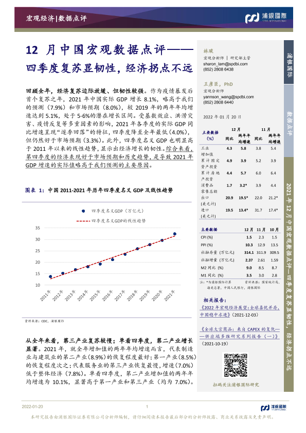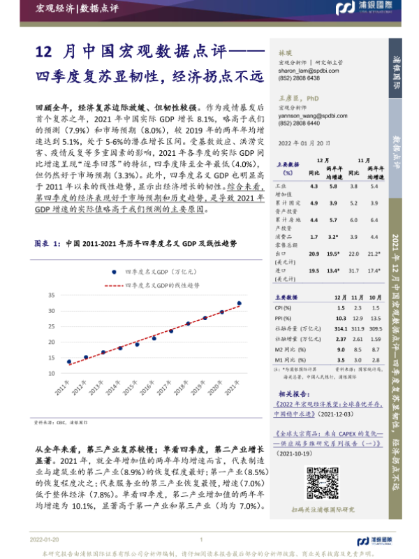 【浦银国际】【20220120】12月中国宏观数据点评:四季度复苏显韧性,经济拐点不远-22页