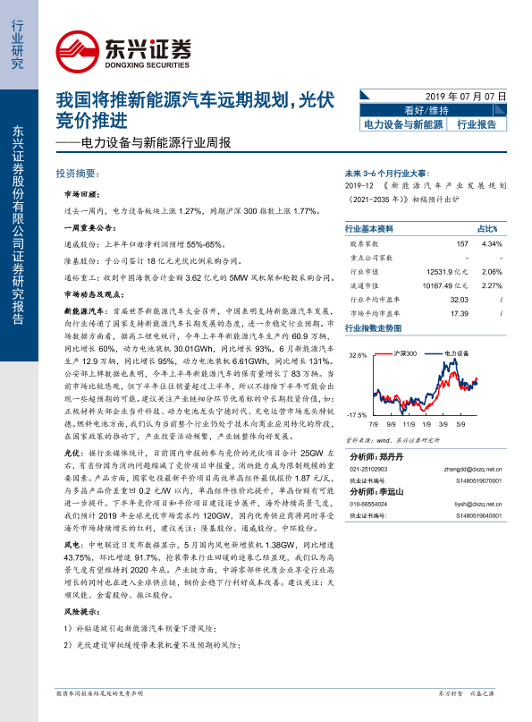 【东兴证券】【20190707】20190707-东兴证券-电力设备与新能源行业周报:我国将推新能源汽车远期规划,光伏竞价推进-12页