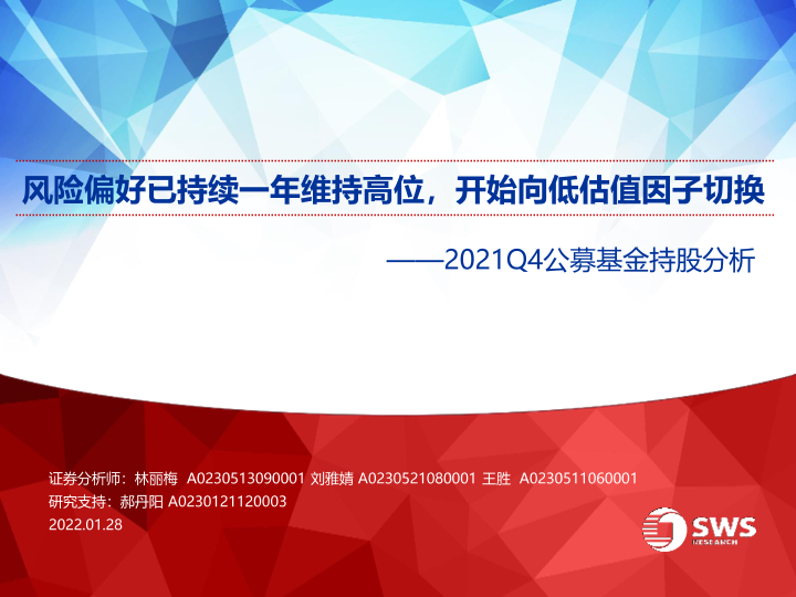 【申万宏源】【20220128】2021Q4公募基金持股分析:风险偏好已持续一年维持高位,开始向低估值因子切换-55页