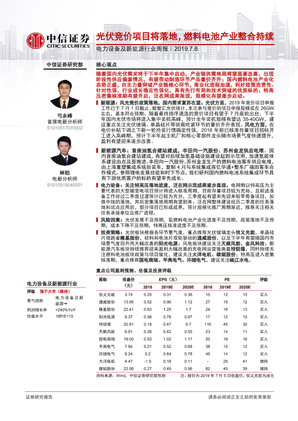 【中信证券】【20190708】电力设备及新能源行业周报:光伏竞价项目将落地,燃料电池产业整合持续-13页