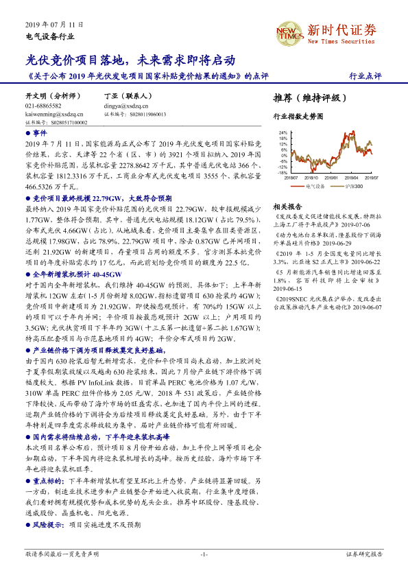 【新时代证券】【20190711】关于公布2019年光伏发电项目国家补贴竞价结果的通知的点评:光伏竞价项目落地,未来需求即将启动-3页