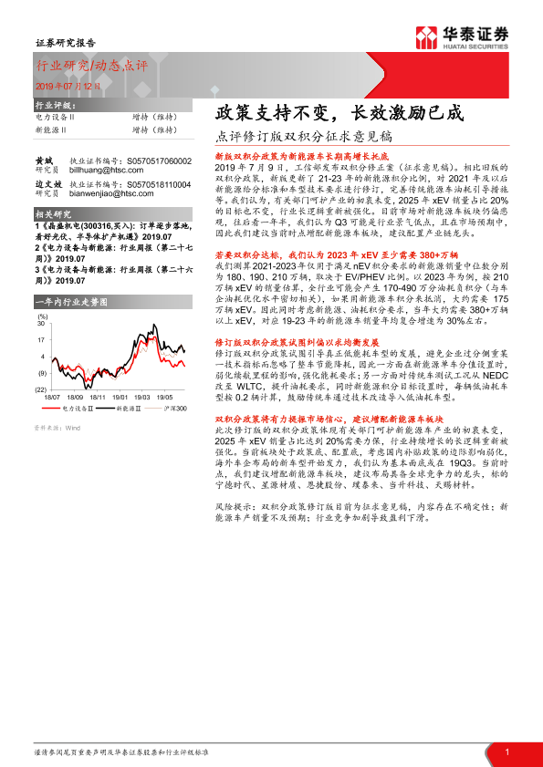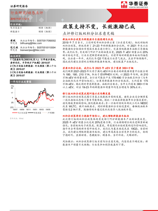【华泰证券】【20190712】电力设备与新能源:点评修订版双积分征求意见稿:政策支持不变,长效激励已成-6页
