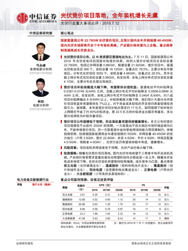 【中信证券】【20190712】光伏竞价项目落地,全年装机增长无虞-7页