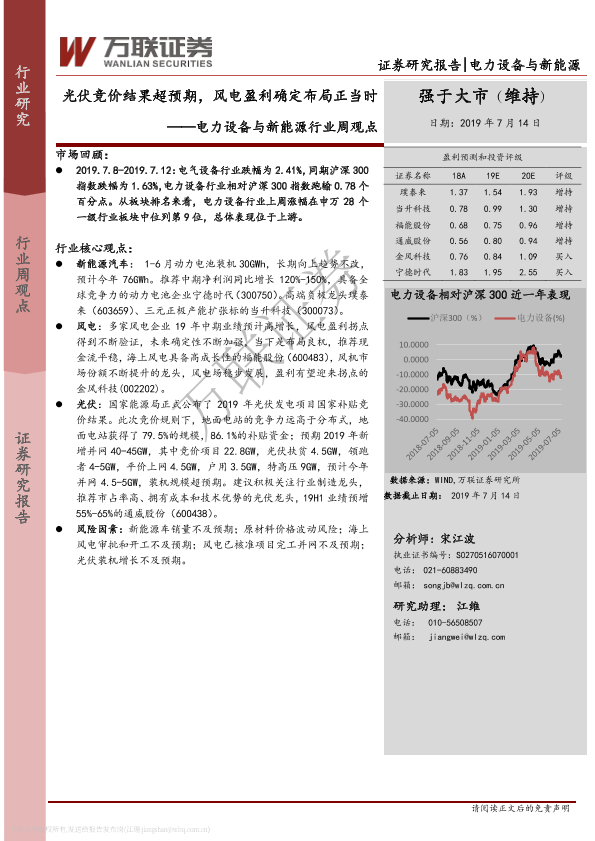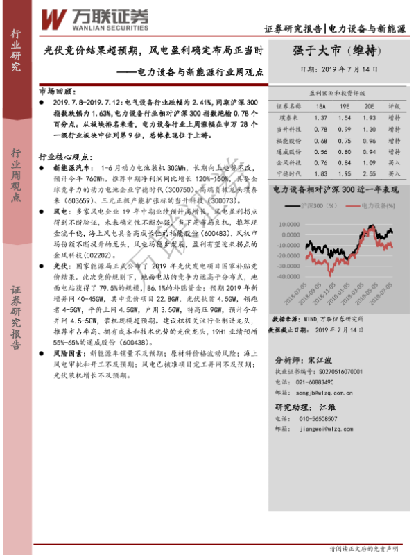 【万联证券】【20190714】电力设备与新能源行业周观点:光伏竞价结果超预期,风电盈利确定布局正当时-11页