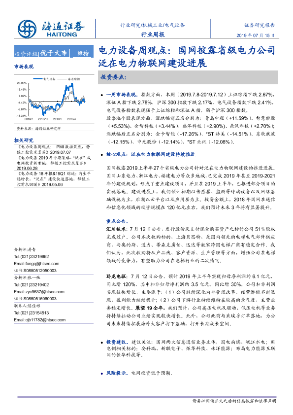 【海通证券】【20190715】电力设备周观点:国网披露省级电力公司泛在电力物联网建设进展-3页