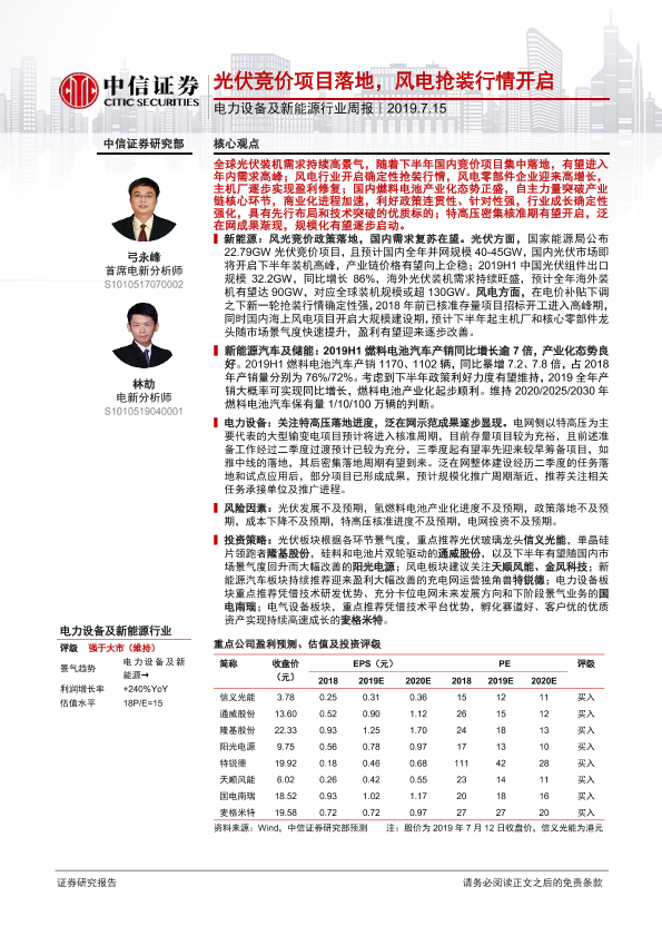 【中信证券】【20190715】电力设备及新能源行业周报:光伏竞价项目落地,风电抢装行情开启-11页