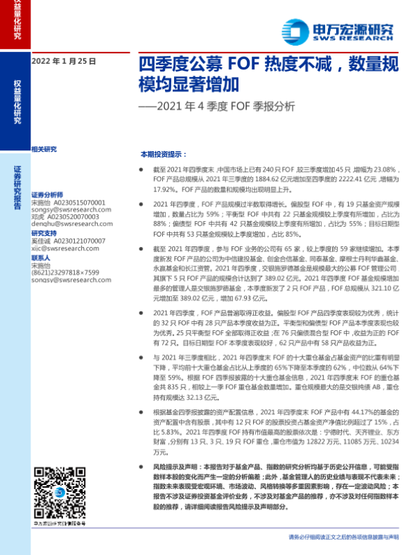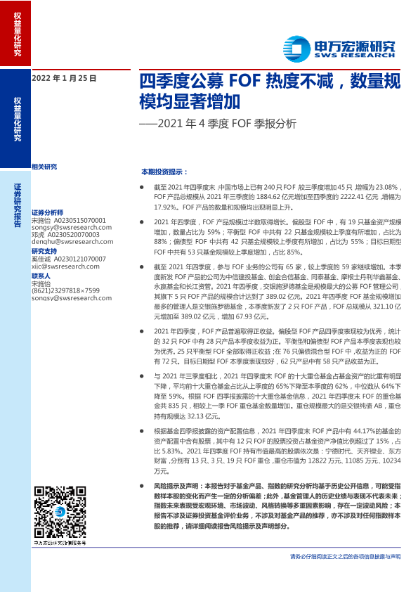 【申万宏源】【20220125】2021年4季度FOF季报分析:四季度公募FOF热度不减,数量规模均显著增加-20页