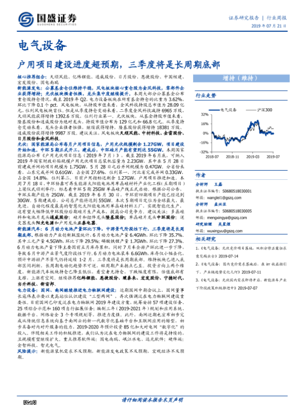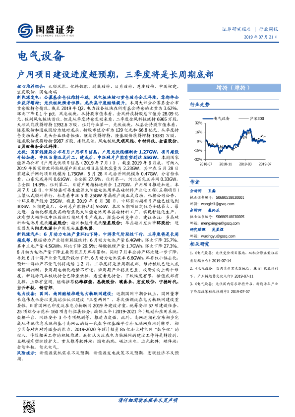 【国盛证券】【20190721】电气设备行业周报:户用项目建设进度超预期,三季度将是长周期底部-24页