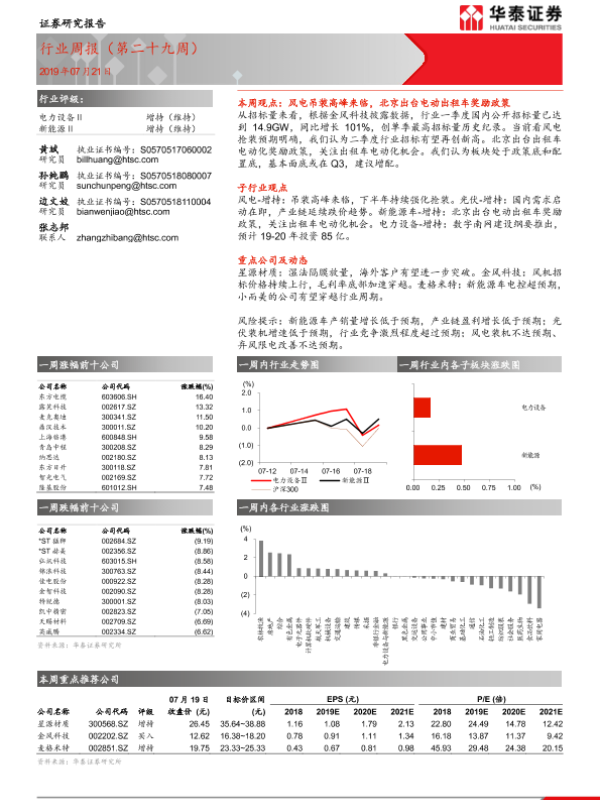 【华泰证券】【20190721】电力设备Ⅱ 新能源Ⅱ行业周报(第二十九周)-15页