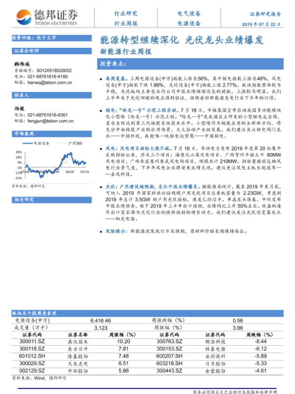 【德邦证券】【20190722】20190722-德邦证券-新能源行业周报:能源转型继续深化 光伏龙头业绩爆发-9页