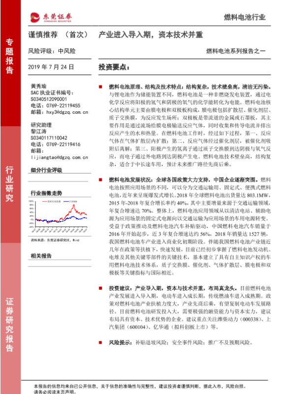 【东莞证券】【20190724】20190724-东莞证券-燃料电池系列报告之一:产业进入导入期,资本技术并重-15页
