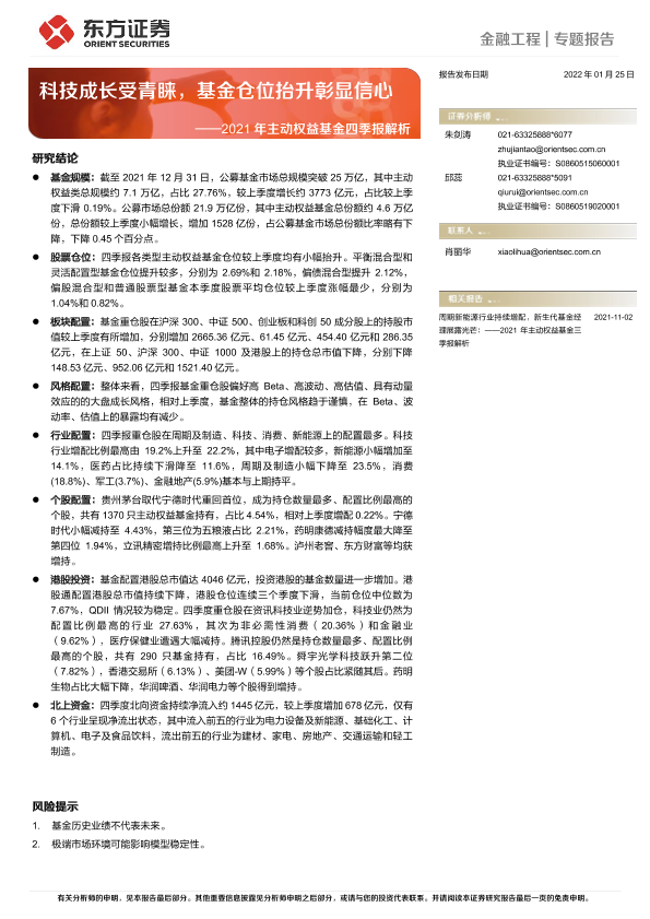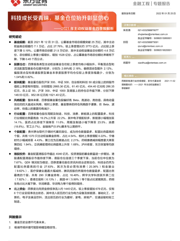 【东方证券】【20220125】2021年主动权益基金四季报解析:科技成长受青睐,基金仓位抬升彰显信心-19页