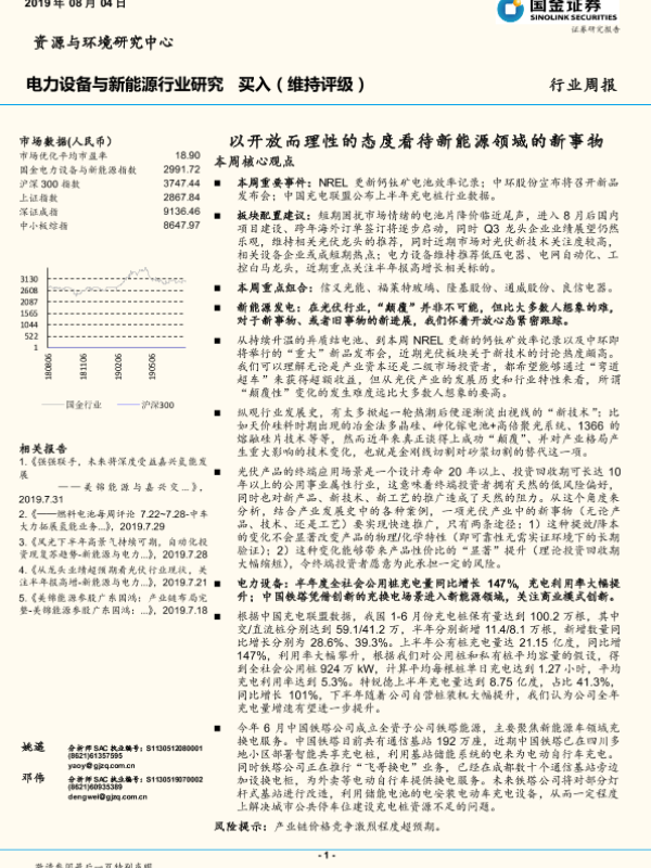 【国金证券】【20190804】电力设备与新能源行业周报:以开放而理性的态度看待新能源领域的新事物-4页