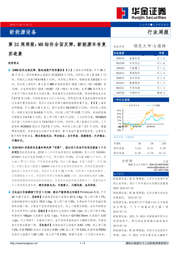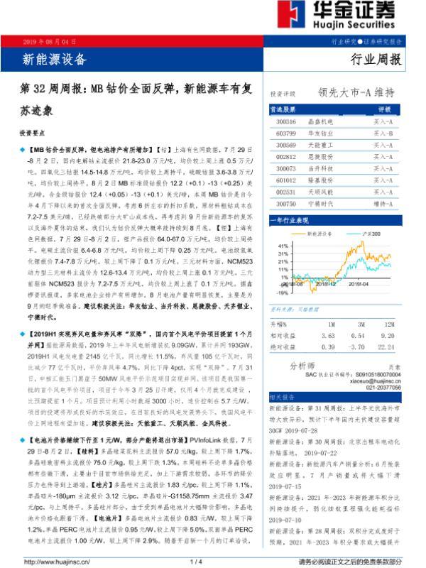【华金证券】【20190804】新能源设备第32周周报:MB钴价全面反弹,新能源车有复苏迹象-4页