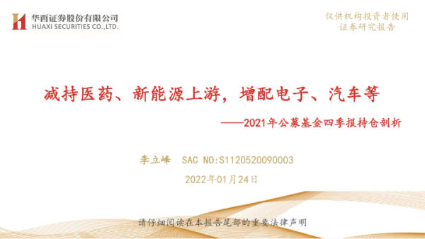 【华西证券】【20220124】2021年公募基金四季报持仓剖析:减持医药、新能源上游,增配电子、汽车等-71页