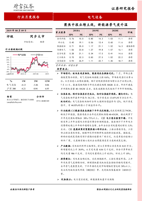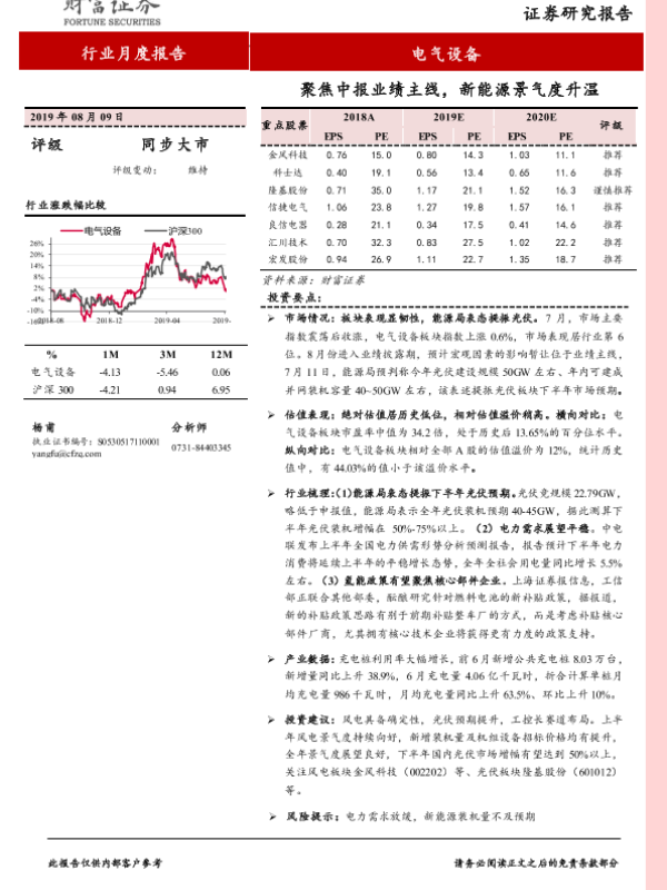 【财信证券】【20190809】电气设备行业月度报告:聚焦中报业绩主线,新能源景气度升温-17页