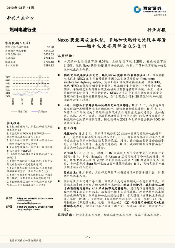 【国金证券】【20190811】燃料电池每周评论:Nexo获最高安全认证,多地加快燃料电池汽车部署-12页