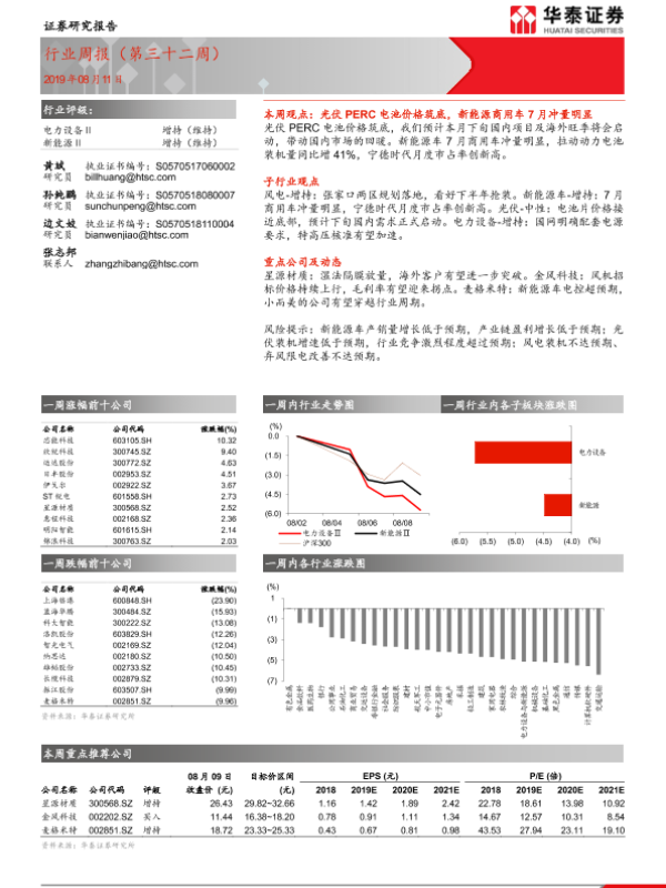【华泰证券】【20190811】20190811-华泰证券-电力设备与新能源行业周报(第三十二周)-14页