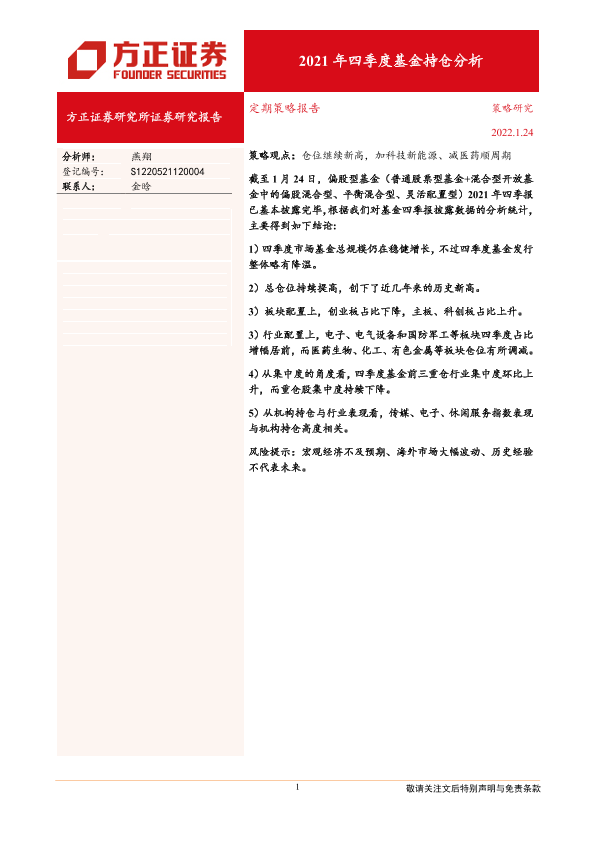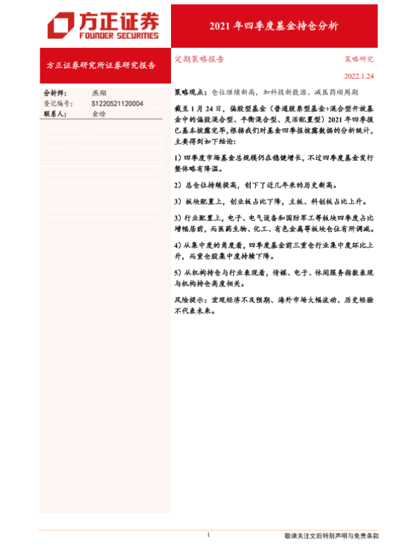 【方正证券】【20220124】2021年四季度基金持仓分析-21页