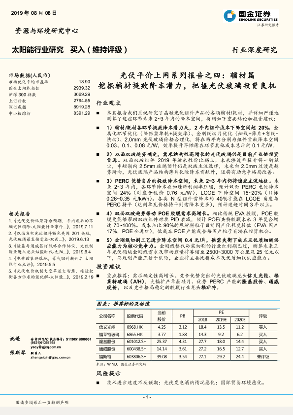 【国金证券】【20190808】光伏平价上网系列报告之四:辅材篇挖掘辅材提效降本潜力,把握光伏玻璃投资良机-34页