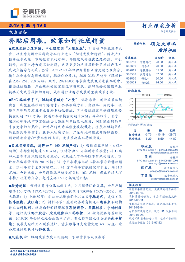 【安信证券】【20190819】电力设备行业深度分析:补贴后周期,政策如何托底销量-38页