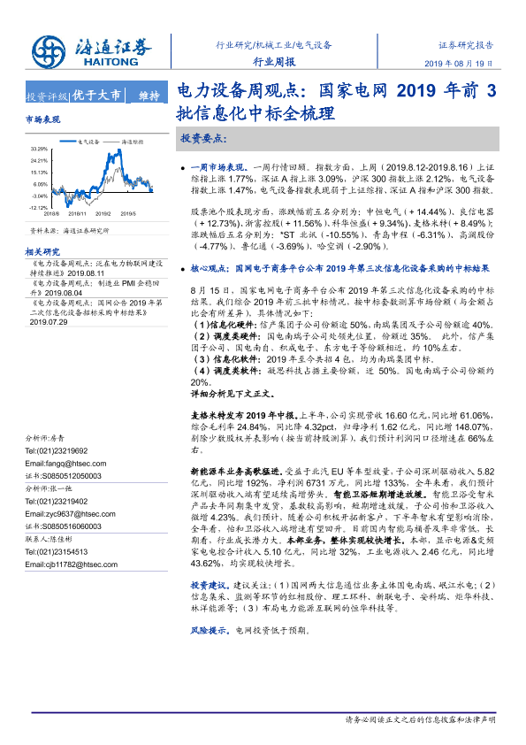 【海通证券】【20190819】电力设备周观点:国家电网2019年前3批信息化中标全梳理-10页