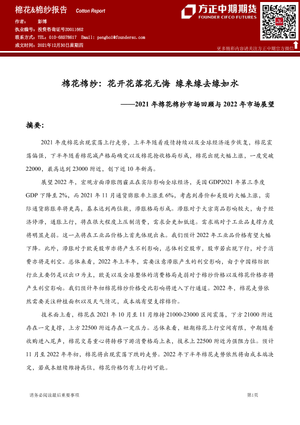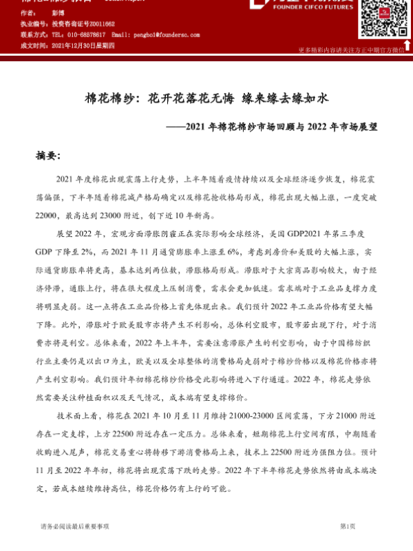 【方正中期期货】【20211230】2021年棉花棉纱市场回顾与2022年市场展望-52页