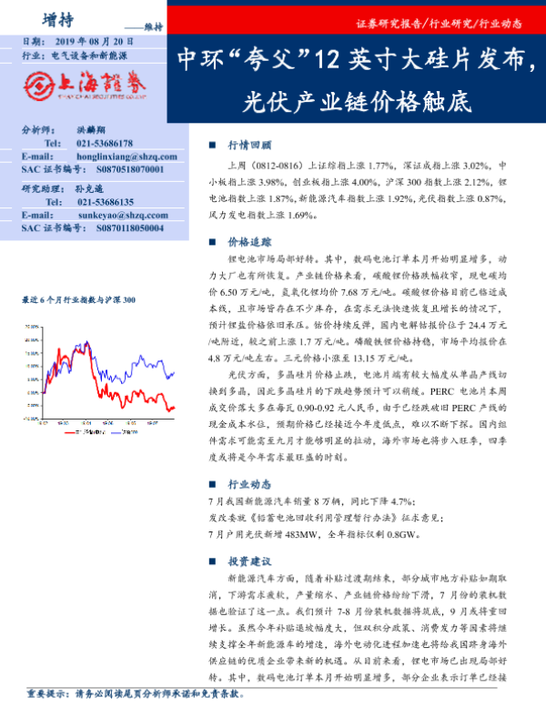 【上海证券】【20190820】20190820-上海证券-电气设备和新能源行业动态:中环“夸父”12英寸大硅片发布,光伏产业链价格触底-14页