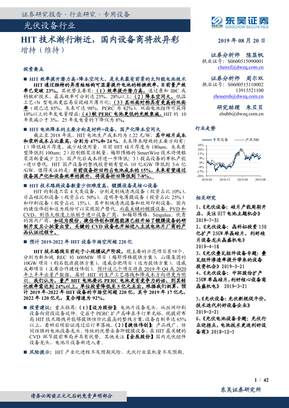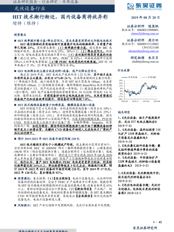 【东吴证券】【20190820】光伏设备行业:HIT技术渐行渐近,国内设备商将放异彩-42页