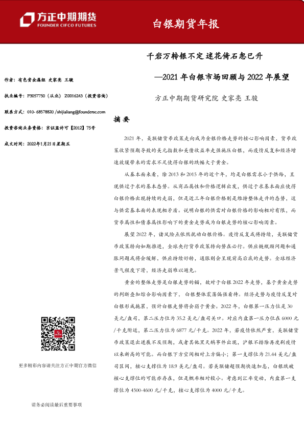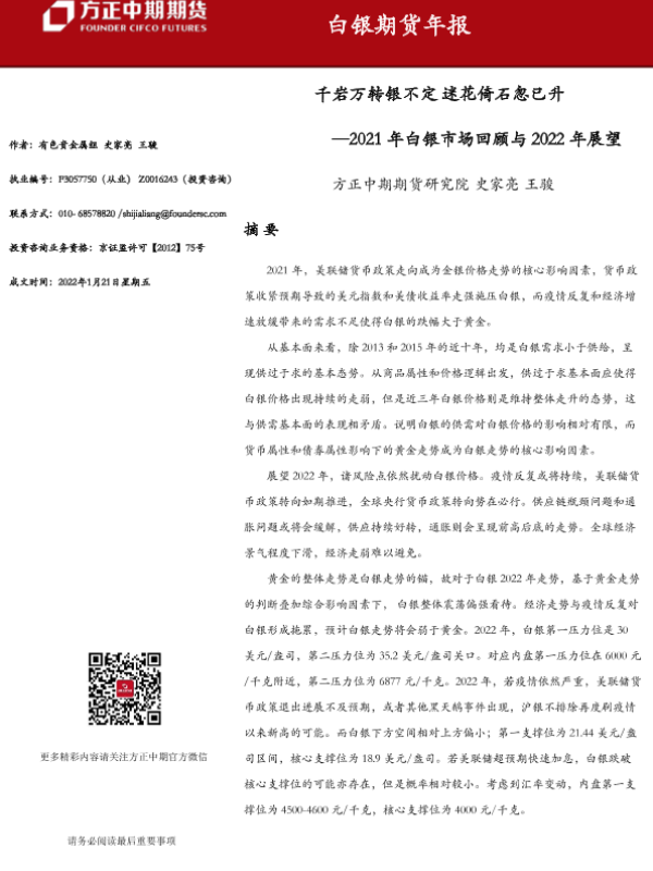 【方正中期期货】【20220121】2021年白银市场回顾与2022年展望:千岩万转银不定,迷花倚石忽已升-51页